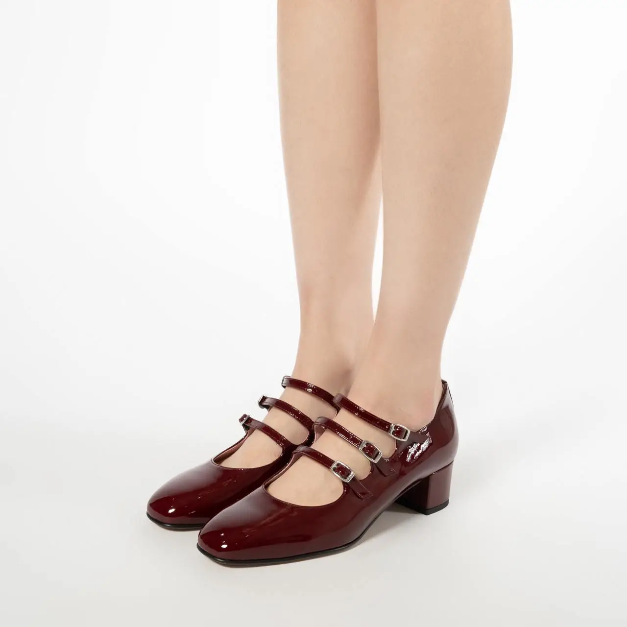 Brand asal Prancis, Carel, mempopulerkan model Mary Jane dengan tiga strap yang sangat ikonik. Carel Kina Mary Jane adalah simbol gaya Parisian Chic. Dengan hak setinggi 4 cm yang stabil, sepatu ini memberikan tambahan tinggi badan tanpa mengorbankan keseimbangan saat berjalan di permukaan yang tidak rata seperti jalanan berbatu.